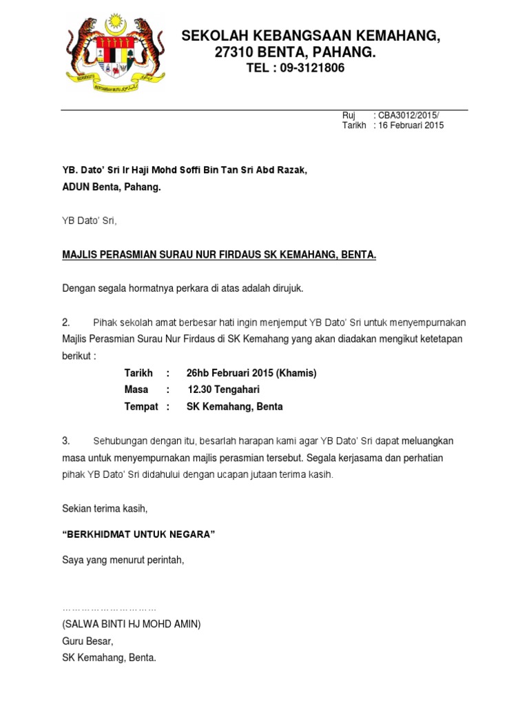 07-6549712 Bilik Guru Besar. Contoh Surat Jemputan Kepada Dato - Related posts to contoh surat rasmi jemputan media. Format contoh surat jemputan tahlil arwah yang baik dan benar 2019.