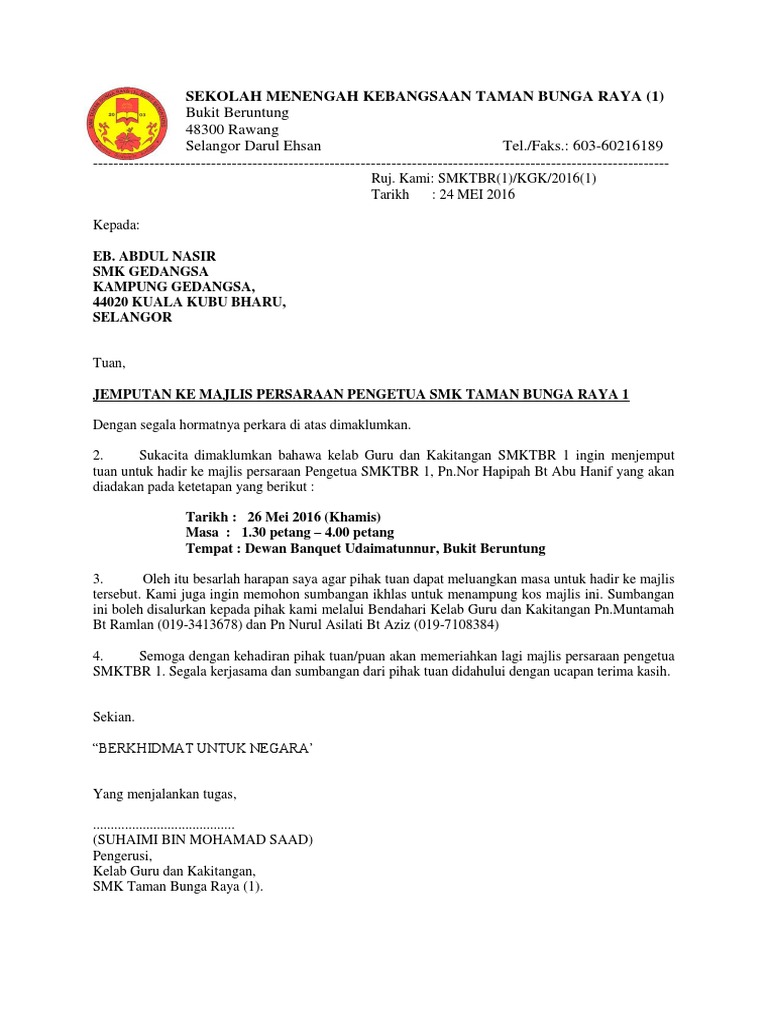 Surat Jemputan Yb Ke Sukan Tahunan. 03-20781725 Yang dihormati Ibu bapa Penjaga Murid Sek. Contoh Surat Rasmi Jemputan Yb.